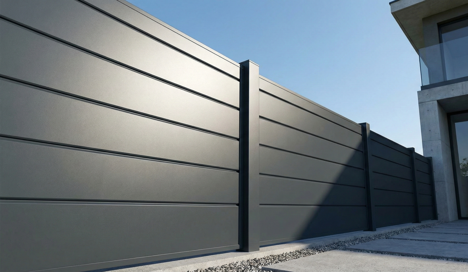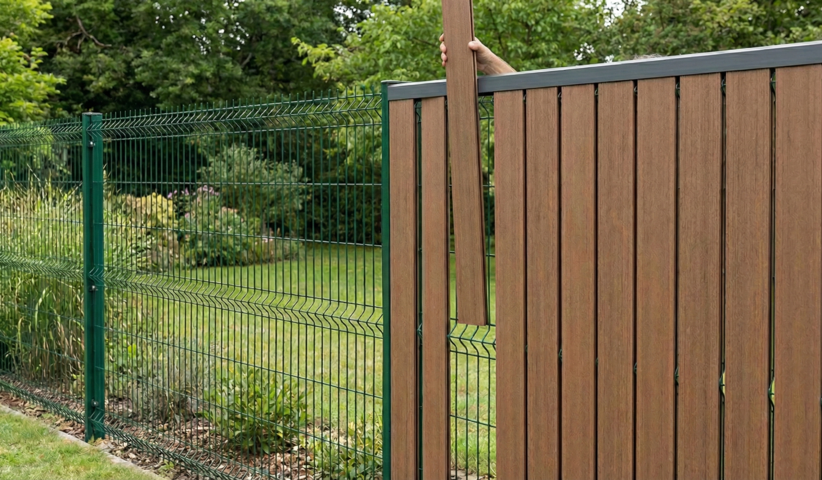 Vertex associe la solidité de poteaux en aluminium (avec renforts acier galvanisé) à la chaleur esthétique du bois composite. Ce mélange technique vous garantit une clôture qui ne bouge pas face au vent et garde ses couleurs, année après année.